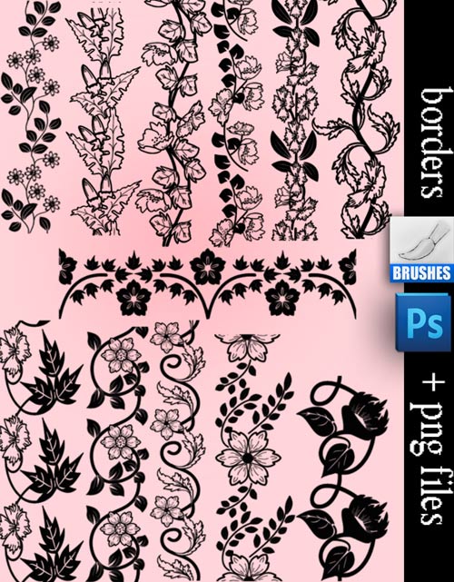 Кисти для фотошопа - Цветочные бордюры Красивый набор кистей для дизайна. ABR | 12 кистей | 12 мб
