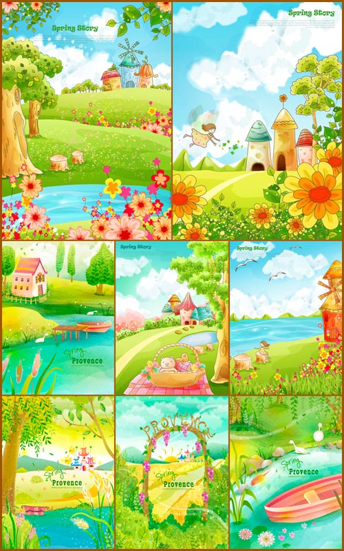 Детские летние фоны в векторе AI + JPG | 11 фонов | 60 мб