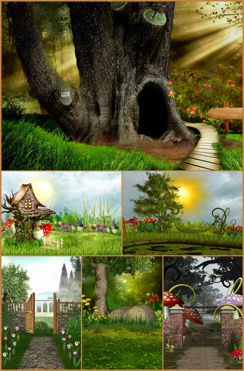 Фоны для фотошопа - Сказочный пейзаж 10 Замечательные сказочные пейзажи для коллажей, шаблонов и детских альбомов. Все фоны в большом разрешении. JPG | 3000 x 2400 px | 12 фонов | 53 мб