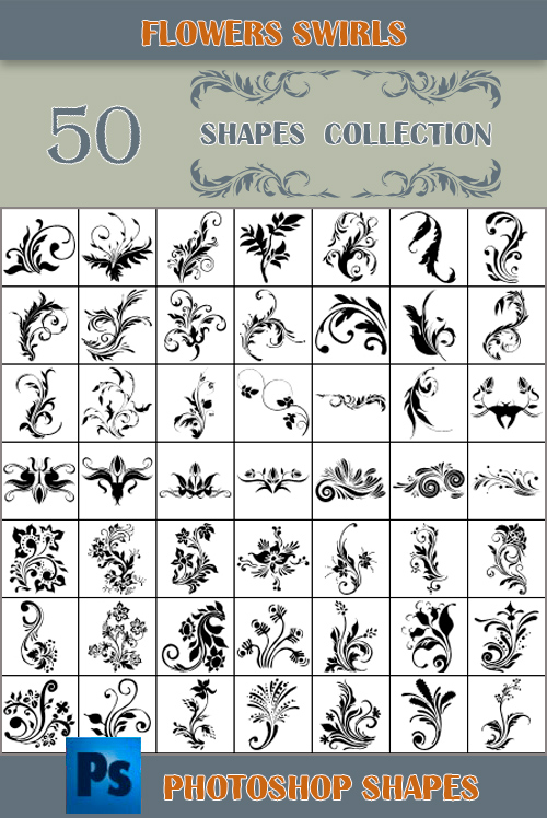 Фигуры для фотошопа - Декоративные цветы завитки Формат - SCH | 50 - фигур | 15 Мб
