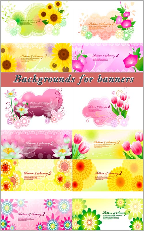 Векторные фоны с цветами для банеров AI + JPG | 12 фонов | 54 мб