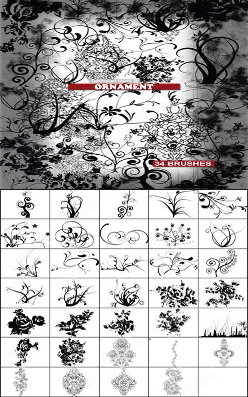 Кисти для Photoshop - Орнамент 2 ABR | 34 кисти | 11 МБ