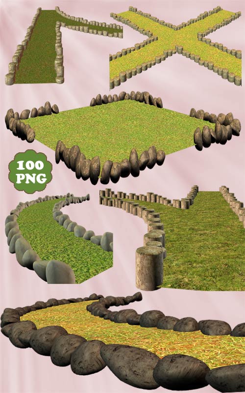 Клипарт - Садовая дорожка Замечательный набор клипарта для фотомонтажа. Очень большой вибор садовых дорожек выложеных камнем поможет вам создавать супер красивые графические работы. PNG | max 1500 x 850 px | 100 дорожек | 110 МБ
