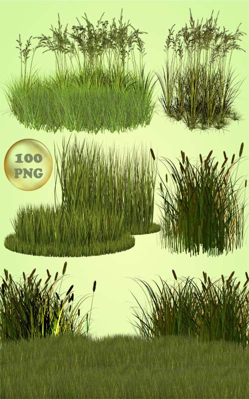 Клипарт - Разная трава Очень красивый набор клипарта для монтажа травы в программе фотошоп. Это трава с камышами, овсяница тростниковая, полевая мохнатая, газонная и т. д. Все элементы на прозрачном фоне. PNG | max 2500 x 2022 px | 100 элементов | 128 МБ