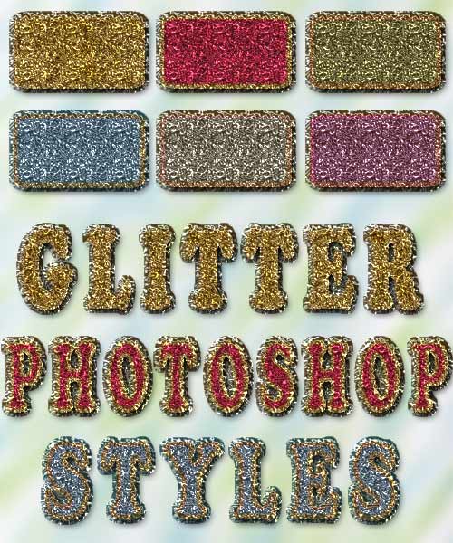 Стили - Удар блестка Замечательный набор стилей для фотошопа, они украсят ваш текст красивым эффектом блестка. ASL | 6 стилей | 11 МБ