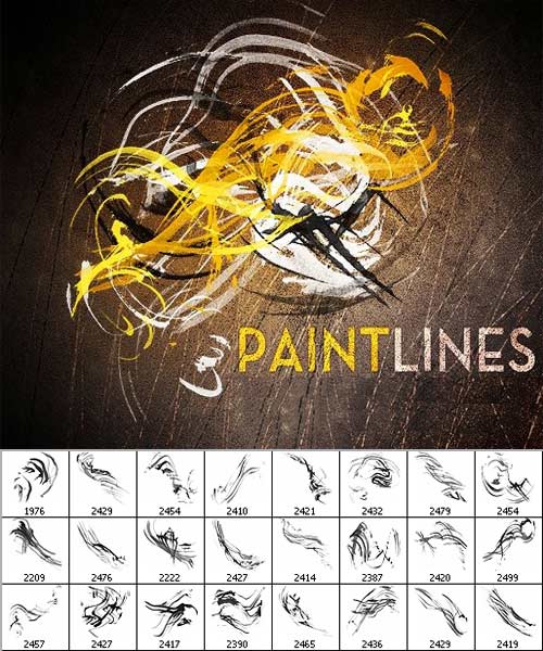 Кисти - Линия красок Красивый набор кистей для Adobe Photoshop, они подходят для любой версии программы. ABR | max 2499 px | 24 кисти | 11 МБ