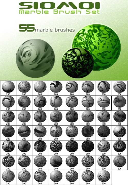 Кисти - Мраморные шары Красивые кисти для работы в программе фотошоп ABR | 200 px | 55 кистей | 11 МБ